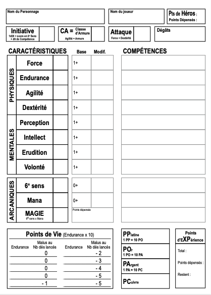 Fiche de personnage :